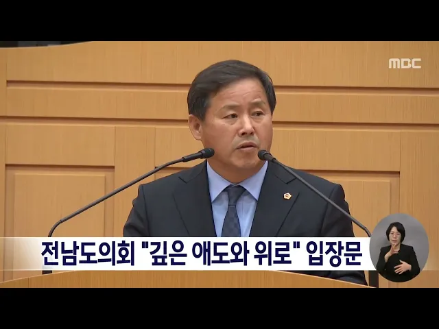 전남도의회 "깊은 애도와 위로" 입장문