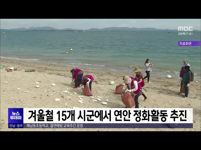 전라남도는 겨울철을 맞아목포시와 여수시 등 15개 연안 시군에서 대대적인 연안 정화 활동을 추진합니다.이번 정화활동은 주민과 어촌계, 유관기관, 기업 등 2천여 명이 참여해 폐스티로폼과 폐어구, 일회용품 등을 수거하고, 해양환경 보호의 중요성을 알리기 위한 캠페인도 함께 실시합니다.