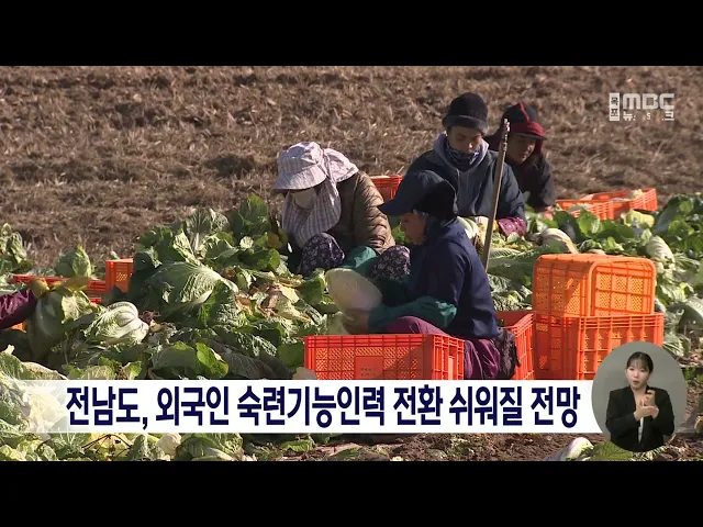 전라남도는 앞으로 외국인 숙련기능인력 유입과 정착이 수월해질 것으로 전망하고 있습니다.이는 전남도가 정부에 건의한 '고용허가제 외국인 현황 정보'를 법무부가 지자체에 제공하기로 한 데 따른 것입니다.전남도는 정부의 이같은 조치로 일정 조건을 갖춘 고용허가제 외국인에게 도지사가 추천 가점을 부여해 장기 체...