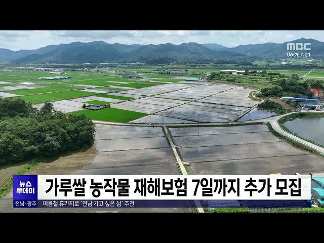 전라남도는오는 7일까지 가루쌀 농작물 재해보험 추가신청을 받습니다.올해 전남도 가루쌀 재배면적은 3천2백 헥타르로 전국 재배면적의 38%를차지하는 가운데, 전라남도는 농가의부담을 덜어주기 위해 농작물 재해보험료의90%까지 지원하고 있습니다.