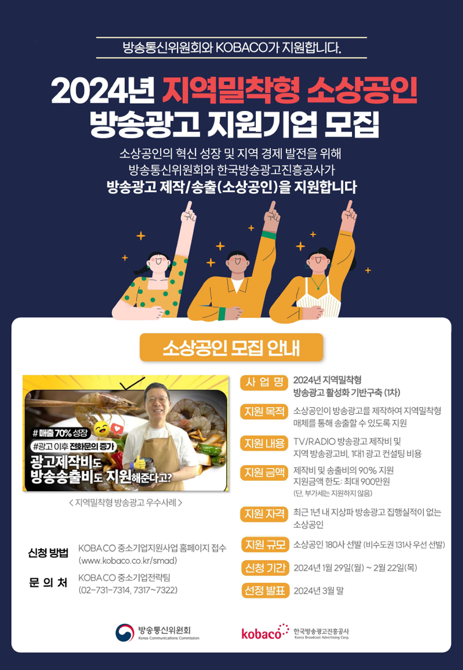 2024년 지역밀착형 소상공인 방송광고 지원기업 집