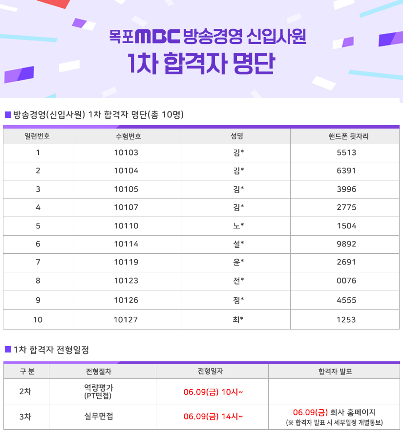 목포MBC 방송경영 신입사원 1차 합격자 발표