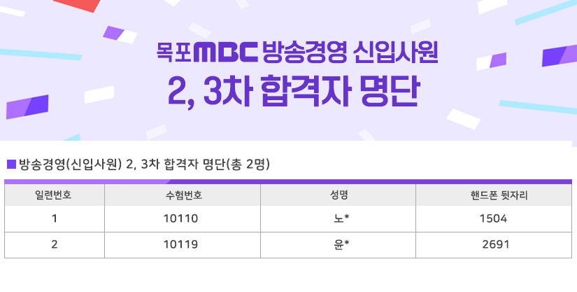 목포MBC 방송경영 신입사원 2, 3차 합격자 발표