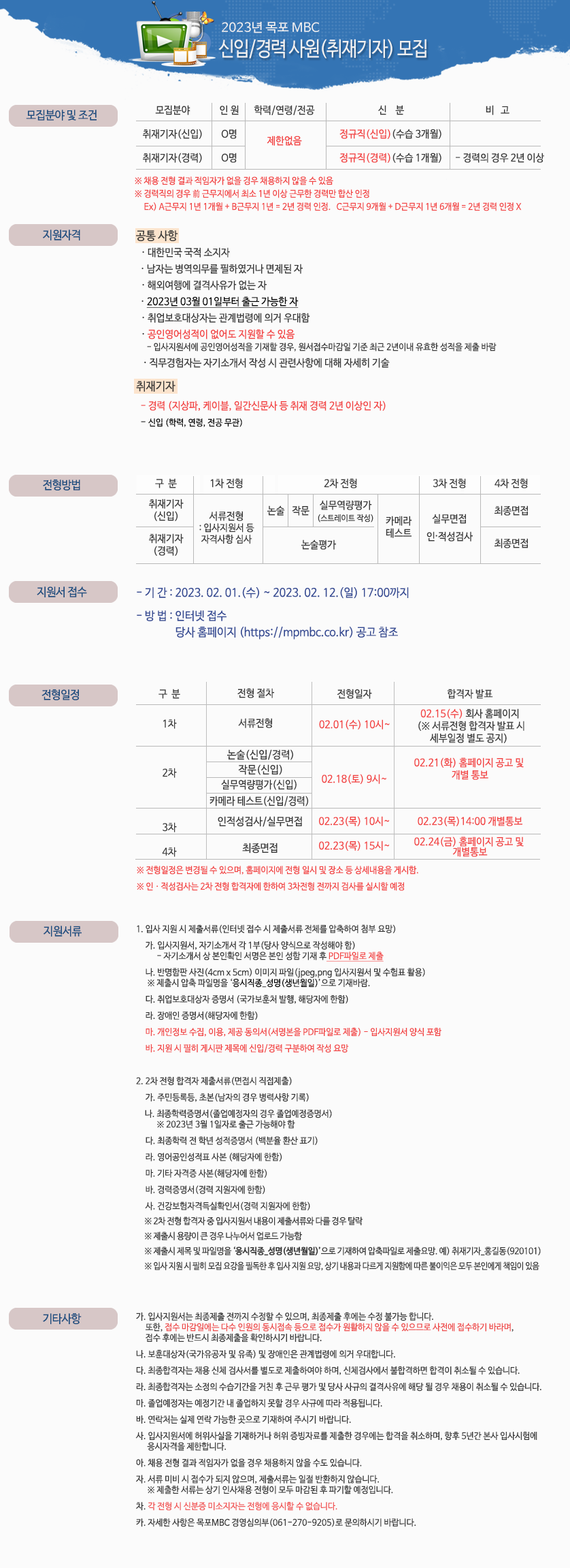 2023년 목포MBC 신입/경력 사원(취재기자) 모집