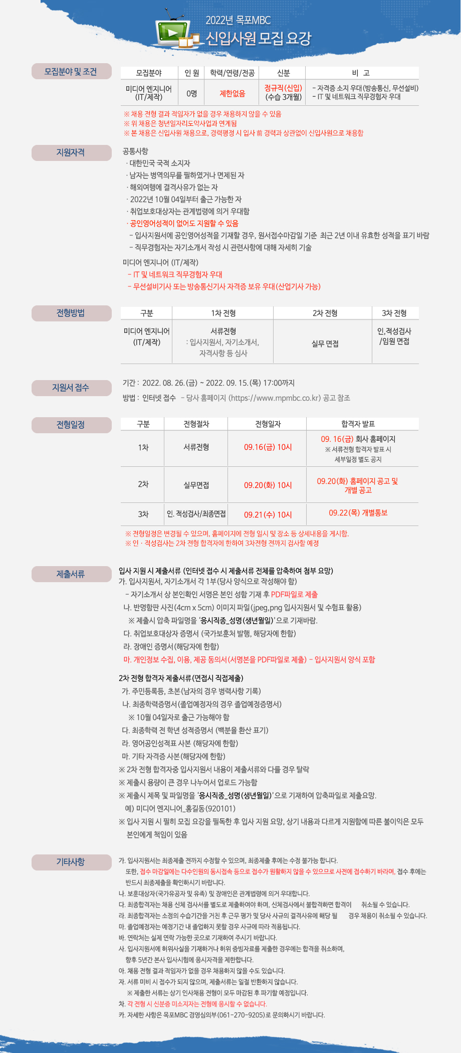 2022 목포MBC 미디어 엔지니어 신입사원 모집 요강