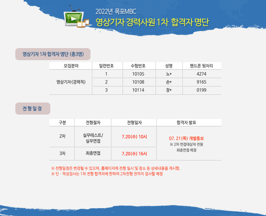 2022년 목포MBC 영상기자 경력사원 1차 합격자