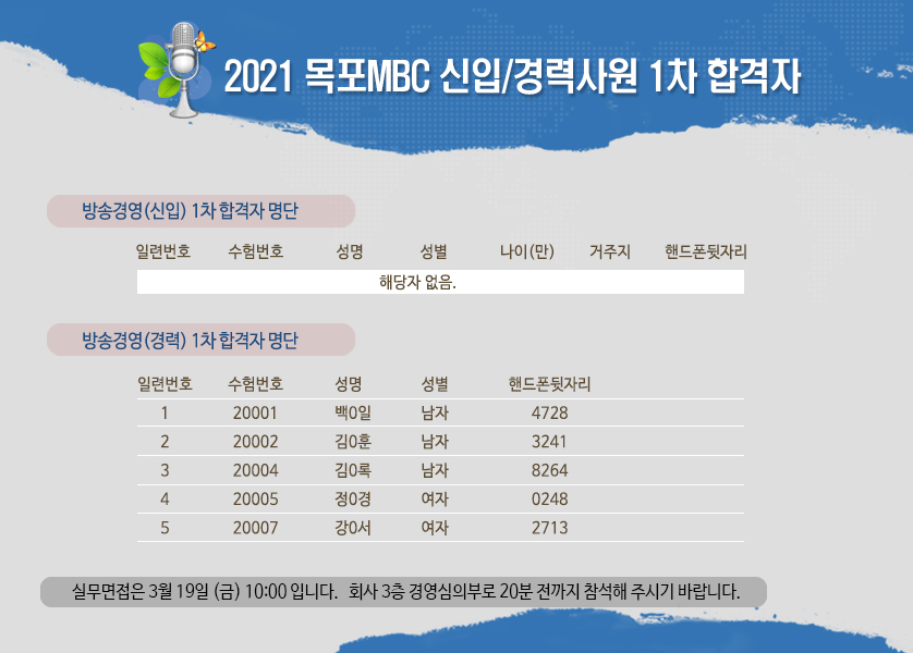 2021 목포MBC 신입[경력] 사원 1차 합격자 발표