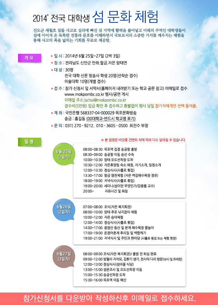 2014’ 전국 대학생 섬 문화 체험(선착순 30명 접수)