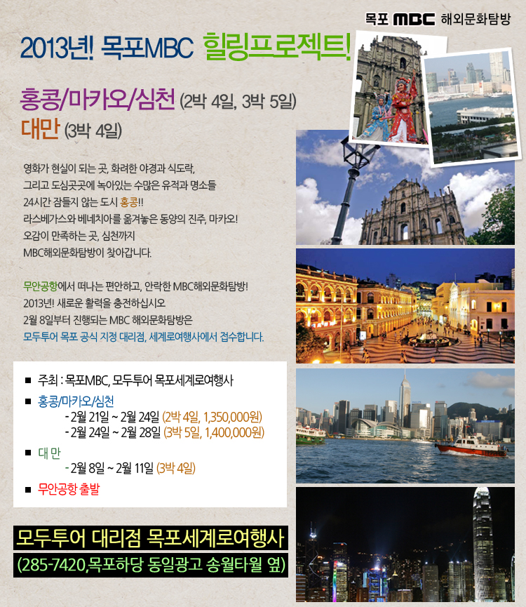모두투어 목포 공식 지정 대리점, 세계로여행사에서 접수합니다.