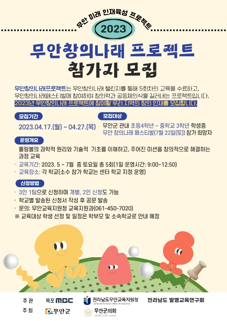 공연전시축제 2023 무안 창의나래 프로젝트 참가자 모집