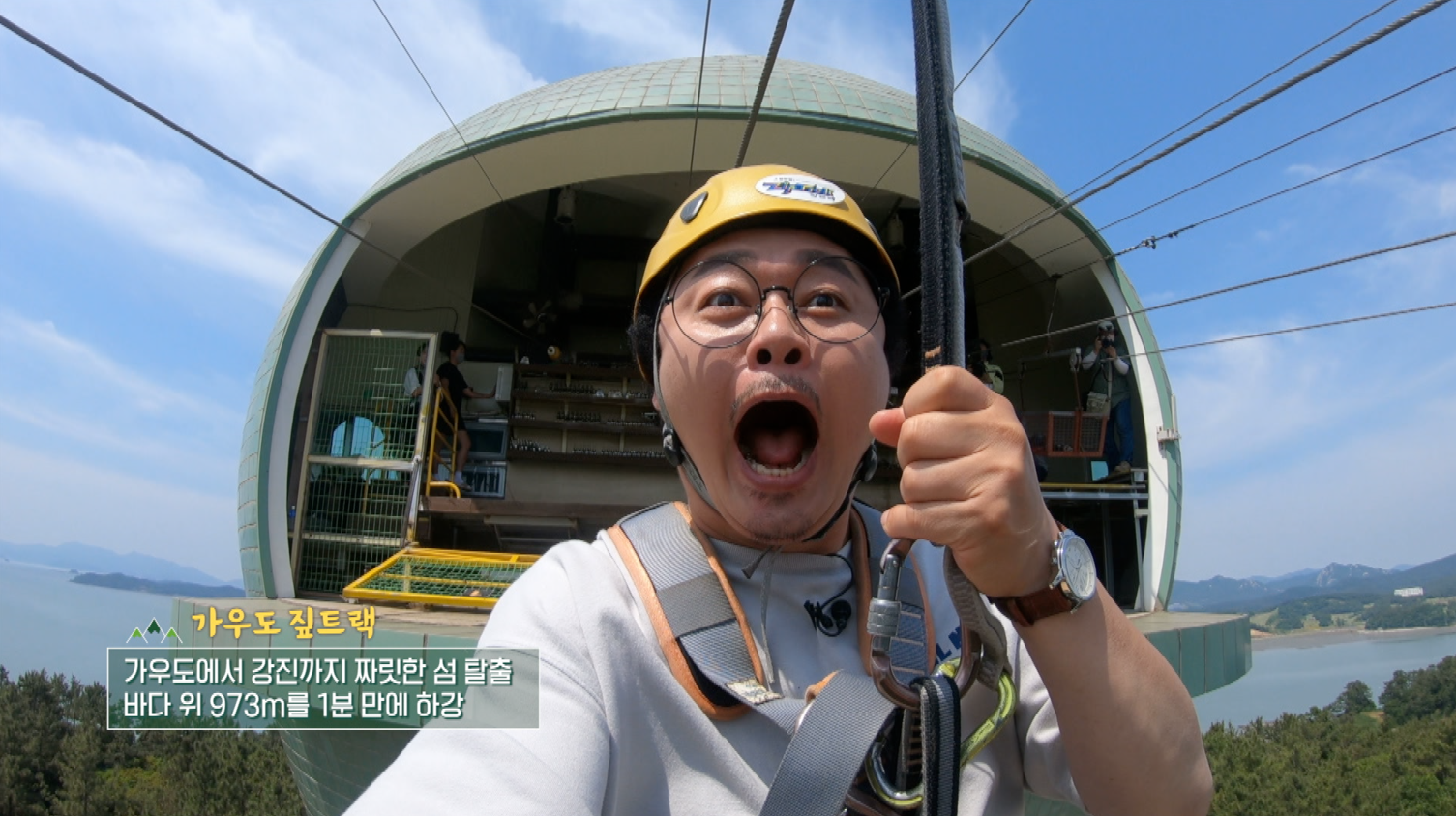 길이 약 1km로 국내 최대길이를 자랑하는 가우도 짚트랙.