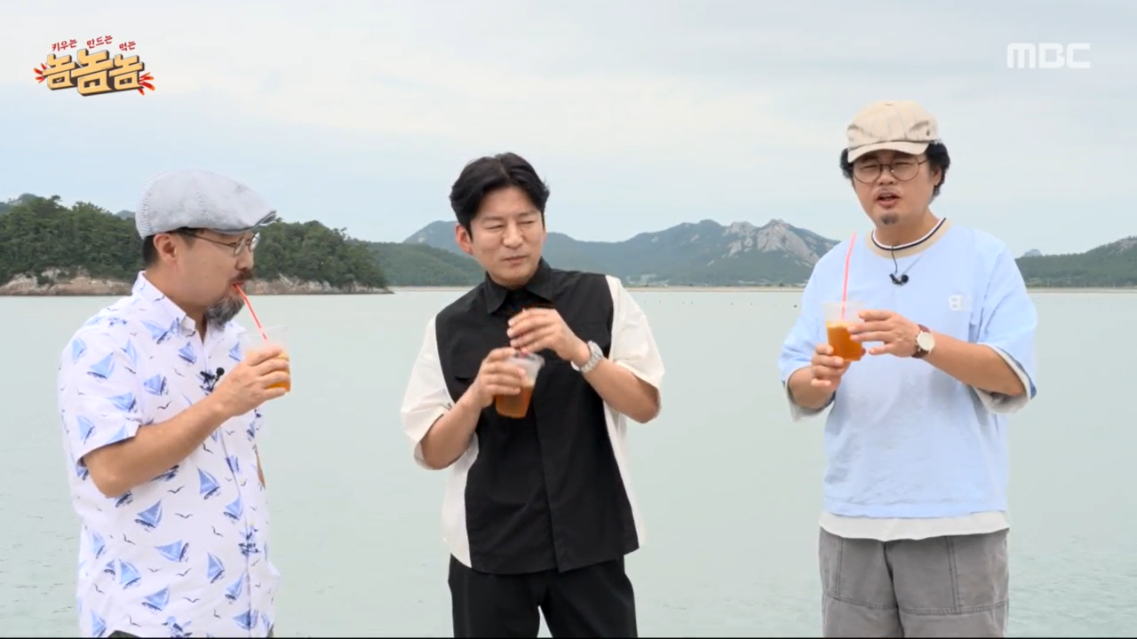 제작진이 준 음료를 맛있게 먹는 삼형제!