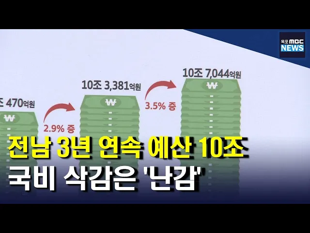 ◀ 앵 커 ▶전라남도가 내년도 예산안으로10조 7천억여 원을 편성했습니다. 올해 본예산보다 3천 6백억여 원 증가하긴 했지만 지역상품권과 비료구입비 등의국비가 전액 삭감돼 내년 전남 살림살이에타격이 불가피해 보입니다.박종호 기자가 취재했습니다. ◀ 리포트 ▶전라남도가 3년 연속 예산 10조원 시대를열었습니다.전남...