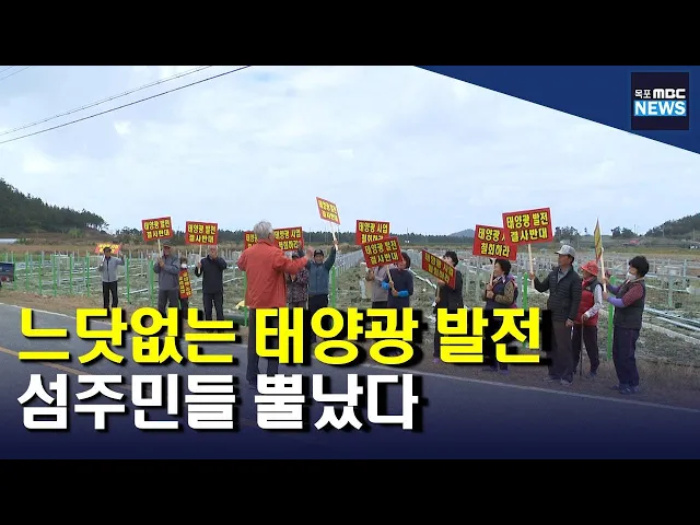 ◀ 앵 커 ▶ 섬지역에 민간 태양광 발전소가 착공됐습니다 주민들은 협의도 없이 느닷없이 태양광 시설공사가 시작됐다며 반발하고있습니다. 김 윤 기자가 취재했습니다.◀ 리포트 ▶ 추수가 끝난 마을 논 앞 도로에서 주민들이 피켓시위를 벌이고 있습니다. 과거 염전이었던 곳에 지난 10월 말부터 태양광 발전소 건설공사가 ...