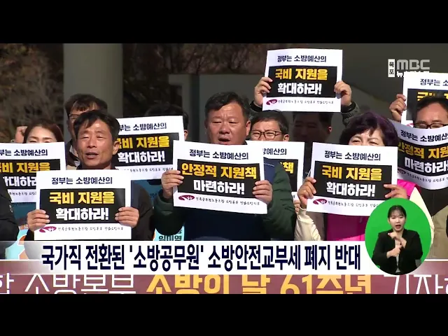 전국공무원노조 전남소방지부는오늘(8) 전남도청 앞에서 기자회견을 열고, 소방공무원 인사·예산의 독립과 안정적인 재원 마련 방안을 촉구했습니다.이들은 소방공무원이 국가직으로 전환된 지 3년 6개월이 지났지만 정부의 지원은 여전히 부족하다며, 소방관과 국민의 안전을 위해서는소방안전교부세 특례가 폐지되지 않고...