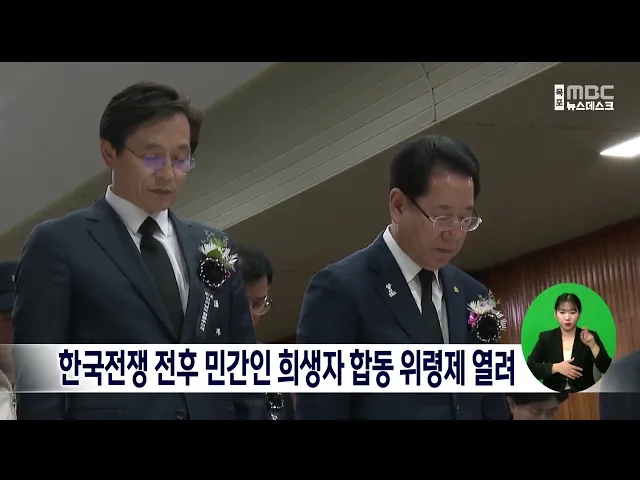 한국전쟁 73주기를 맞아 한국전쟁 전후 민간인 희생자전라남도 합동 추모제가 오늘(8)영암군민회관에서 열렸습니다. 추모제에서는 진혼무와 전통제례,헌화와 분향 등이 진행됐으며김영록 지사가 추모사를 통해"민간인 희생자 실태조사와 추모사업을내실있게 펼치겠다"고 말했습니다. 현재까지 전남에서는진실화해위원회 1,...