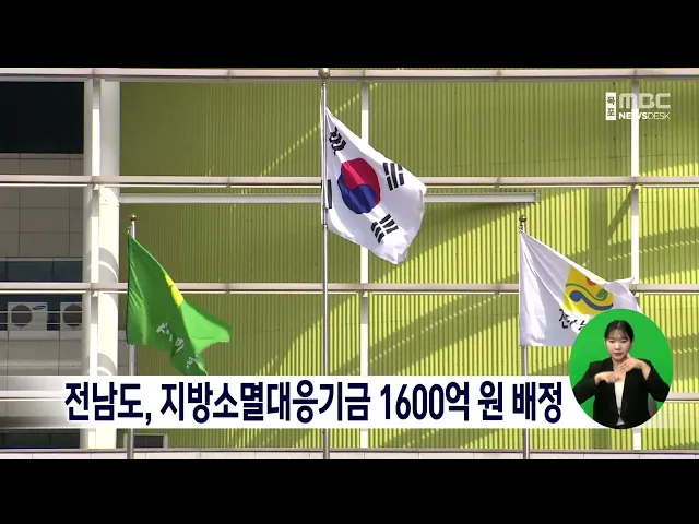 전라남도는 내년도 지방소멸대응기금천6백억 원을 배정받았습니다. 전라남도는 지방소멸대응기금을 지역 거점별 청년비전센터와 공공산후조리원,청년창업지원 등 12개 사업, 그리고전남형 만원 주택 건립 등에 투자할 계획입니다.지방소멸대응기금은정부가 인구감소와 지방소멸 위기 대응을 위해지난해부터 10년동안 1조 원...