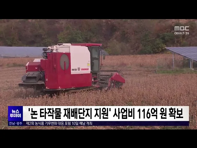 쌀 적정생산을 유도하기 위해논 타작물 재배단지를 지원하는농림축산식품부의 내년도 '식량작물공동경영체육성'사업으로전라남도가 116억 원을 확보했습니다. 이는 전국 전체 사업비 가운데가장 많은 35%로 도내 농업인들에게타작물 재배 기반 조성에 필요한교육컨설팅과 시설·장비, 선별·저장시설 구축을 위한다각화사업 ...