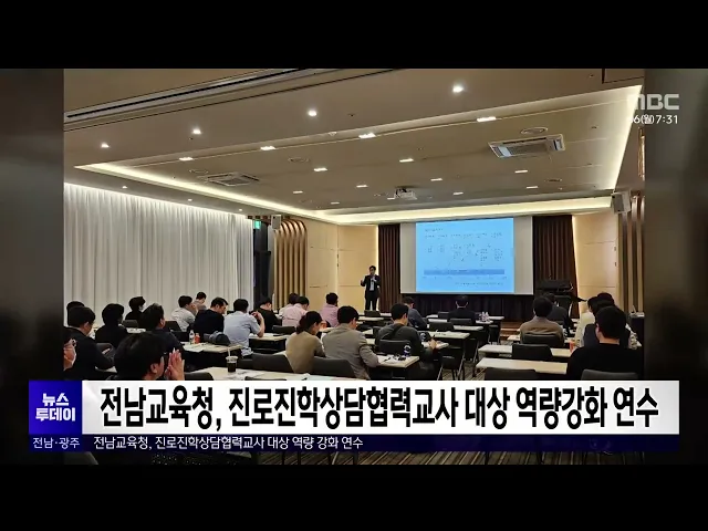 수능을 앞두고 전라남도 교육청이 진로진학상담협력교사 70명을 대상으로역량강화 연수를 진행했습니다. 이번 연수에서는 실제 상담 전략 사례를 통해 학생과 협력을 강화할 수 있는 방안에 대한논의가 진행됐으며, 다중 미니 면접 지도를 위해 학생들이 실제 면접에서 유의해야 할 점 등을 함께 공유하는 시간이 진행됐습...