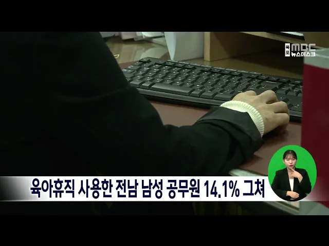 만8세 이하의 자녀가 있는 전남의 남성 공무원 가운데 지난해 육아휴직을 사용한 경우는 14.1%에 그친 것으로조사됐습니다.이 기간 전남의 여성 공무원의육아휴직 사용 비율은 40.3%로 크게 높았는데기본소득당 용혜인 의원은 지자체에서도 남성 육아휴직 사용을 높일 수 있는 유인책을 마련해야한다고 말했습니다.