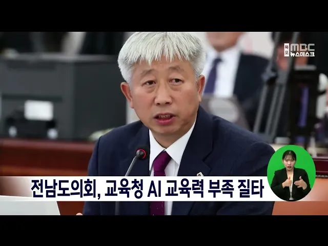 전남도의회 박형대 의원은전남교육청에 대한 행정사무감사에서 전남의 정보교사는 중학교 27%, 고등학교 24% 밖에 배치되지 않아제대로 된 인공지능 교육이 이뤄지지 못하고있다고 지적했습니다.또, 학교에 20억 원의 예산으로 AI 교육용 로봇을 100대 지급했는데 현장에서는 한 달도 안돼 사용하지 않는 등 예산 낭비로 이...