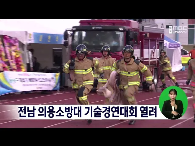 전남소방본부와 전남의용소방대연합이오늘(3) 무안군 스포츠종합파크에서전남 의용소방대 기술경연대회를 개최했습니다. 이번 대회에는 전남 22개 시군에서 4천여명의 의용소방대원이 한자리에 모여 소방호스를 이용한 다양한 소방기술을 선보였으며, 의용소방대원들의 재능기부 공연 등 다양한 행사도 열렸습니다.