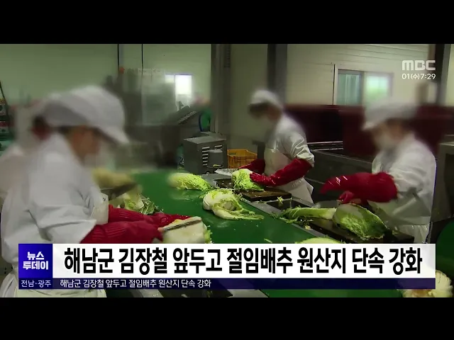 해남군 김장철 앞두고 절임배추 원산지 단속 강화