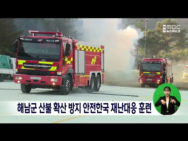 안전한국 재난대응훈련 산불 확산 점검이 오늘(31) 해남군 삼산면 두륜산 일원에서 산림청과 전남도, 해남소방서 등 13개 기관단체 250명이 참가한 가운데 열렸습니다. 훈련은 원인 미상의 화재로 발생한 산불이 강풍으로 확대되면서 인접 상가 화재로 이어진 상황을 가상해 다수의 사상자 발생과 산불 진압, 구조구급 훈...