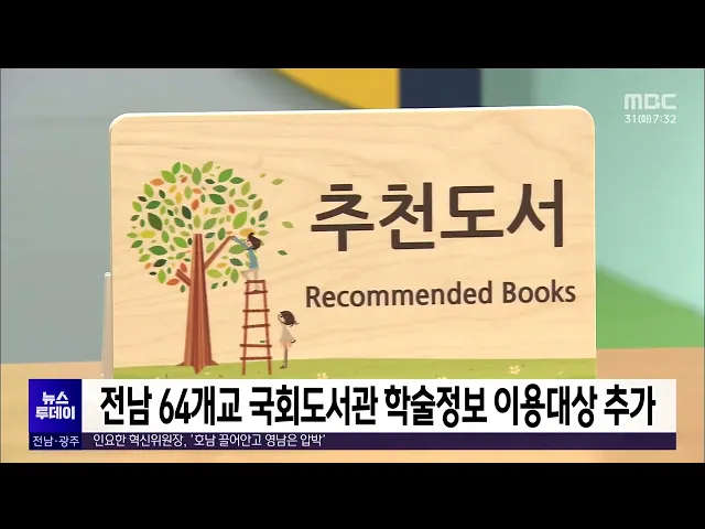 전라남도교육청 산하 64개 학교 도서관이 올해 국회도서관 학술정보 무료 이용 대상에 추가돼 전남지역 이용학교가 401곳으로 늘었습니다. 전남교육청은 지난 2천20년부터 국회도서관과 지식정보 공유 업무협약을 맺고, 매년 일선학교의 신청을 받아 국회도서관 무료 이용서비스를 받도록 하고 있습니다.