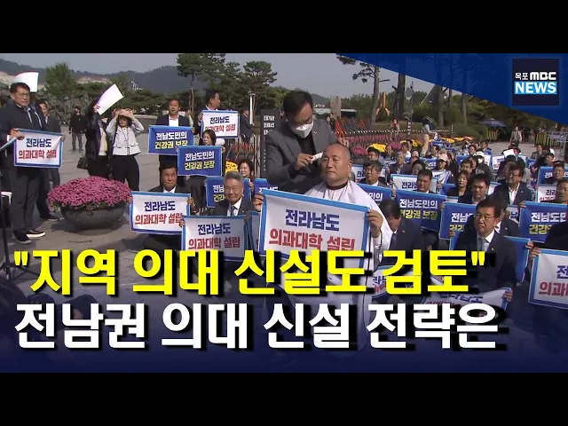 ◀ 앵 커 ▶ 정부가 2025학년도 의대 정원을 늘리는 방안을 발표하면서 지역 의대 신설도지속 검토하겠다며 가능성을 열어뒀습니다. 목포대와 순천대에서각각 의대유치를 염원해온 상황에서전라남도는 '통합 의과대학'으로신청하는 방안도 제안했는데,이에대한 반응은 엇갈립니다. 김진선 기자입니다.◀ 리포트 ▶ 2025학년도 ...