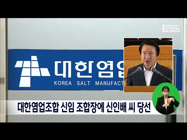 대한염업조합 신임 조합장에 신인배 전 신안군 의원이 당선됐습니다. 신인배 조합장은 어제(26) 치러진 보궐선거에서총 투표자의 50점6%를 득표해 41점4%를 득표한 이종주 후보를 누르고 당선됐습니다. 신 조합장은 전임 이사장의 잔여임기인오는 2천25년 3월까지 조합장직을수행하게 됩니다.