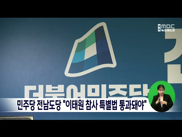 민주당 전남도당이10.29 이태원 참사 1주기를 앞두고희생자들을 추모하고,이태원 참사 진상규명 특별법 통과를정부와 여당에 촉구했습니다. 민주당 전남도당은"진실규명을 위해 추진된 이태원 참사 진상규명 특별법이정부 여당의 반대로 법사위에 계류중"이라며"특별법 통과는 진실을 위해 싸우고 있는유가족과 국민들에게...