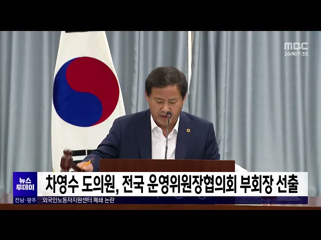 전남도의회 차영수 운영위원장이대한민국 시·도의회 운영위원장협의회 부회장으로 선출됐습니다.차영수 운영위원장은 "전국 17개 시·도의회 운영위원장들과 긴밀히 소통해 지방의 현안 해결에 앞장서며 지방의회의 역할과 위상도 강화해 나가겠다"고 밝혔습니다.대한민국 시·도의회 운영위원장협의회는 시·도의회 간 공동 ...