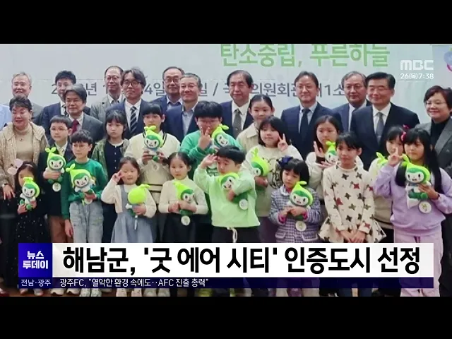 해남군은 제14회 공기의 날 기념식에서‘굿 에어 시티’인증도시로 선정됐습니다. 해남군은 농축산업이 중심이 된 농촌도시형으로 청정환경을 살리고, 탄소중립을 실현하기 위해 시행하고 있는 보릿짚 토양 환원 사업과 영농 부산물 파쇄 임대사업 등 등이 높은 평가를 받았습니다.