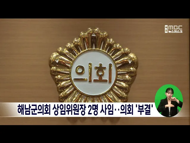 해남군의회 상임위원장 2명 사임.. 의회 '부결'