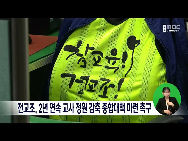 전교조 전남지부는 내년도 전남교육청의 교사정원 2차 가배정안에서 교사 정원 백명을 감축할 예정으로 나타났다며, 종합대책 마련을 촉구했습니다. 전교조 전남지부는 최근 조합원들을 대상으로 실시한 설문조사에서 교원 정원 감축 폐해를 우려하는 목소리가 높았다며 교원 감축을 중단하고, 교사정원을 학급기준으로 배...