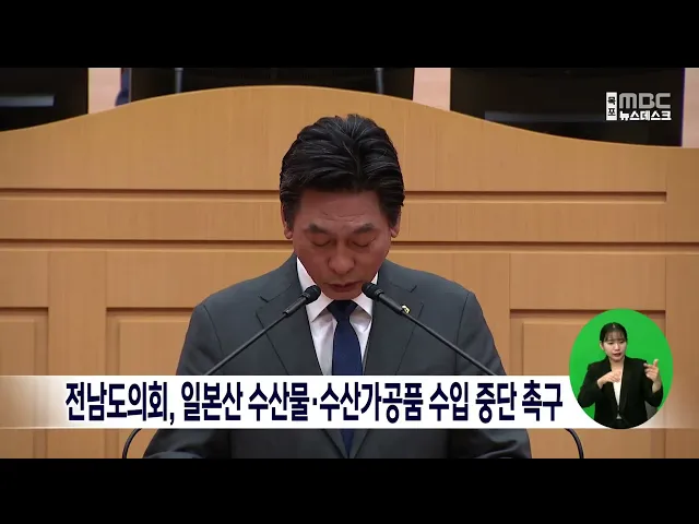 전남도의회는일본 후쿠시마 원전 오염수 방류에 대응하기 위해 일본산 수산물과 수산가공품 수입중단을 요구하는 건의안을 채택했습니다. 전남도의회는 국민의 알권리와 안전을 위해일본산 수산물과 수산가공품에 대한 수입규제 조치를 견고하게 유지하고, 수입금지 확대 등 확실한 대안을 마련해야한다고 촉구했습니다.