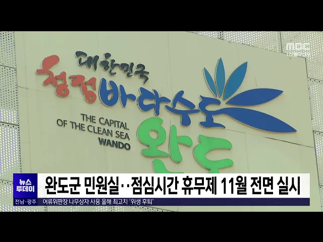완도군은 군청을 비롯한 읍면 사무소 민원실의 점심시간 휴무제를 11월부터 전면 실시합니다. 완도군은 완도읍 민원실을 대상으로 10월 한달간 점심시간 휴무제를 시범운영하고, 이장 회보와 읍면 밴드, SNS 등을 통해 홍보하는 한편, 24시간 운영 가능한 무인 민원 발급기를 17곳으로 확대 설치했습니다.