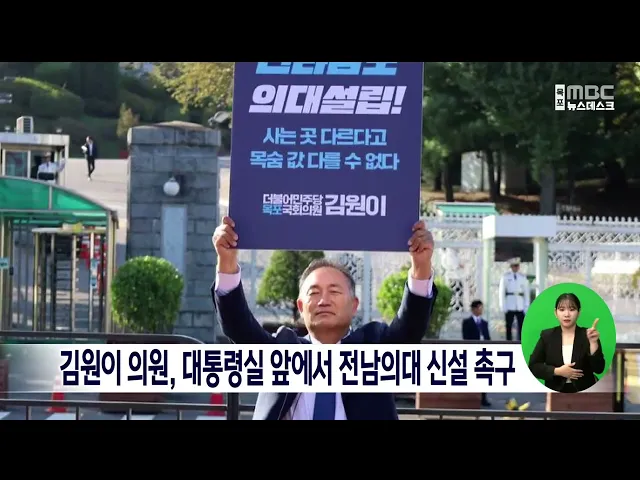 정부의 의대정원 증원 계획이조만간 발표될 예정인 가운데,더불어민주당 김원이 의원이용산 대통령실 앞에서 전남권 의대 신설을 촉구했습니다. 김 의원은 "사는 곳이 다르다고 목숨값이 달라선안 된다"며 "의사정원 증원 계획에의대없는 전남의 의대신설을 반드시 포함해필수의료와 지방의료, 공공의료 확충이라는정책 목...
