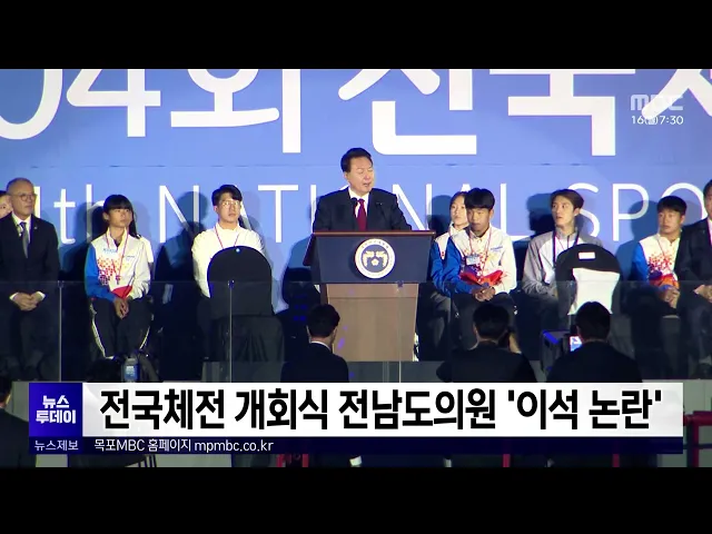 전국체전 개회식에 참석한 전남도의원들이행사가 끝나기 전에 대거 자리를 떠 논란이 일고 있습니다. 전남도의원 30여 명은 지난 13일 목포종합경기장에서 열린 개회식에 참석했지만윤석열 대통령이 기념사를 할 때, VIP석 인근에 마련된 도의원 단체 좌석에는 한 명만 자리를 지켰습니다. 체육회 관계자는전남도가 유치한 ...