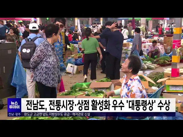 전라남도가 2023년 전국우수시장박람회에서전통시장과 상점가 활성화 우수 지자체로 선정돼 대통령상을 받았습니다. 전라남도는 전통시장 경쟁력 강화를 위해주차 환경 개선과 노후 시설 정비를 하고상인의 날 행사를 전국 최초로 개최한 점 등이높은 평가를 받았습니다.
