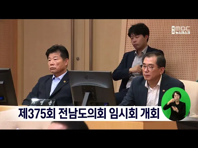 제375회 전남도의회 임시회가시작됐습니다.전남도의회는 임시회 첫날,정부 청소년 예산 삭감 즉각 철회 촉구 건의안과 농어가목돈마련저축 제도 개선 촉구 건의안 등을 처리했습니다.오는 20일까지 열리는 임시회에서는전라남도 저출생 대책 기본 조례안 등56건의 안건을 심의할 예정입니다.