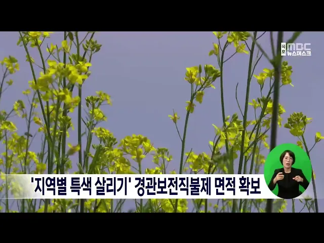 전라남도가지역별로 특색있는 경관작물을 재배하기 위한'경관보전직불제' 사업의 목표 면적7천 454헥타르를 모두 확보했다고밝혔습니다. 경관보전직불제는 라벤더와 유채 등 경관작물 재배를 통해 농촌 경관을 아름답게 관리하고,이를 농촌관광 등과 연계해 지역경제 활성화를 유도하는 사업입니다. 전남도가 확보한 면적...