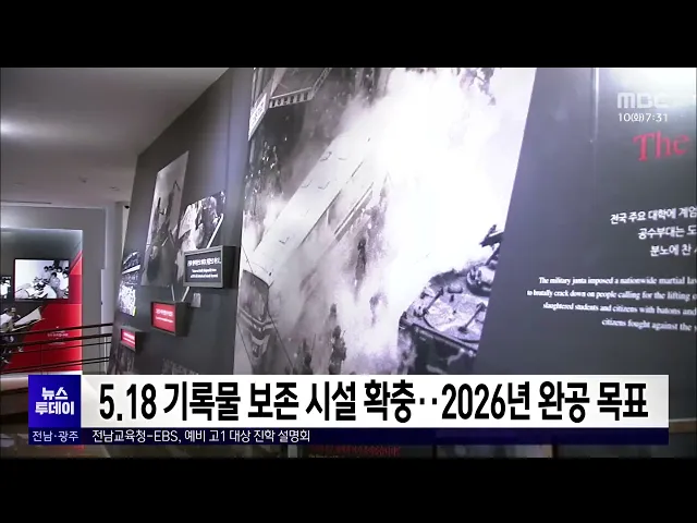 유네스코 세계기록유산에 등재된 5.18 민주화운동 기록물 보존시설이 확충됩니다. 광주시와 5.18민주화운동기록관에 따르면, 5.18 기록물 보존시설 확충사업 건축 기획 용역이 이번 달 안으로 시작됩니다. 5.18 기록관은 서구 치평동 5.18 교육관 공터를 부지로 정하고정부와 세부 추진방안을 협의할 계획이며, 2026년을 목...