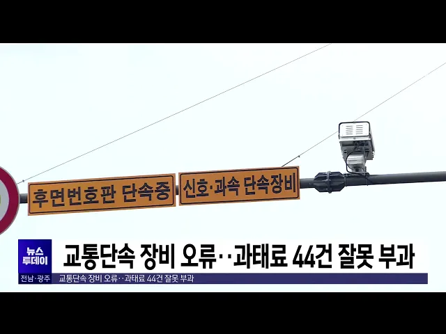 교통 단속 장비 오류로 잘못 부과된 과태료가올해 전남에서만 44건 발생한 것으로 나타났습니다.경찰청이 국회에 제출한 자료에 따르면올해 1월부터 8월까지 전남에서 교통 단속 장비 오류로 잘못 부과된 과태료는 44건에 269만 2천 원으로 집계됐습니다.