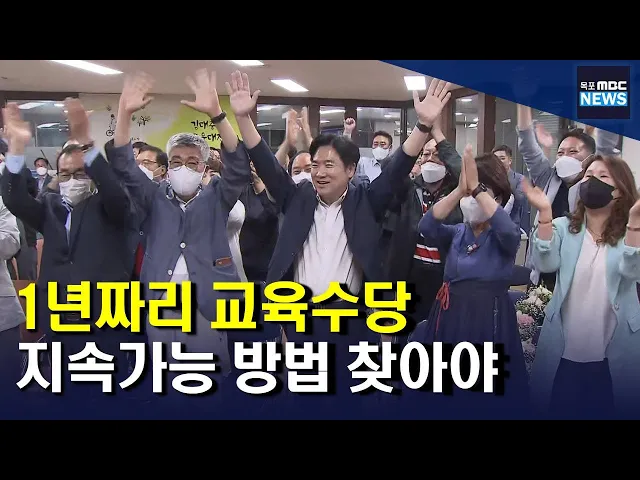 ◀ 앵 커 ▶전남의 교육자치와 인구소멸 위기를 해소하기 위해 전남학생교육수당이 내년 3월부터 지급됩니다.그러나 1년 한시적으로 지급되는 것이어서,교육수당을 지속하는 방안 마련이 시급합니다. 신광하 기자가 보도합니다.◀ 리포트 ▶ 주민 직선 4기 김대중 전남교육감의 핵심공약인 학생교육수당이 내년 3월부터 지급됩...
