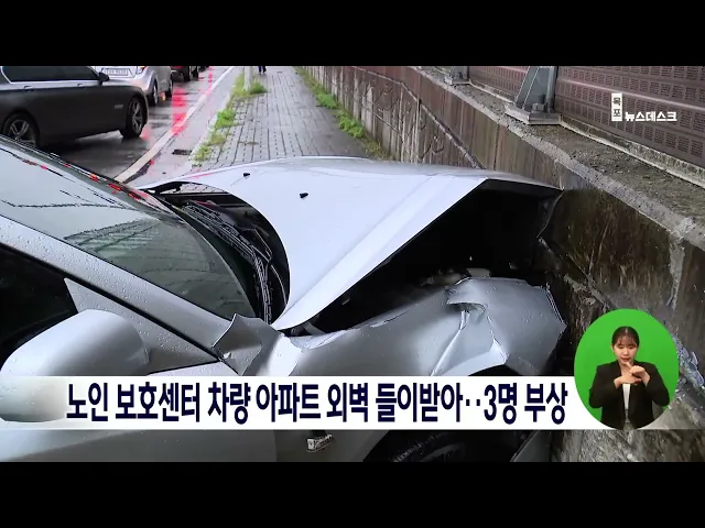 노인 보호센터 차량 아파트 외벽 들이받아.. 3명 부상