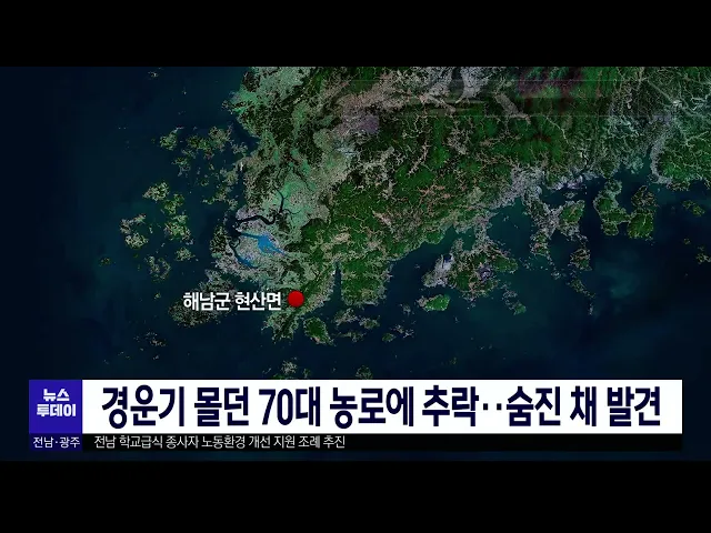 어제(12) 오후 2시 10분쯤 해남군 현산면의 한 농로에서 70대 남성이 전복된 경운기에 깔려 숨진 채 발견됐습니다. 경찰은 남성이 농로 옆 도로에서 경운기를 운전하다 1.5미터 아래로 추락한 것으로 보고 정확한 사고 경위를 조사하고 있습니다.