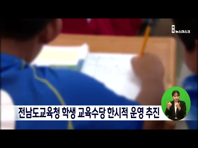 김대중 전남교육감의 핵심 공약인 전국 최초 학생 교육수당의 연내 지급이 무산된 가운데, 내년도 한시적 운영 방안이 추진되고 있습니다 전남교육청은 최근 보건복지부 사회보장협의회가 '재협의'를 결정하면서 '내년 1년간 운영한 뒤 평가'하는 방안을 제시함에 따라 수용하겠다고 답했습니다. 이에따라 사회보장협의회가...