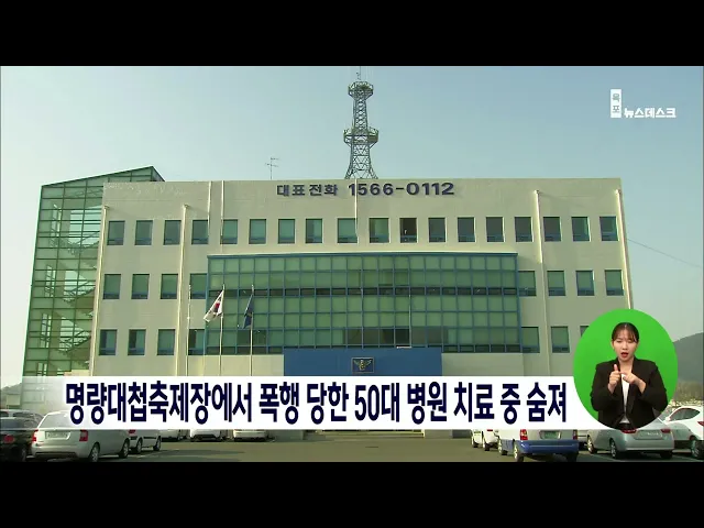 지난 9일 오후 4시 30분쯤 명량대첩축제장에서 지인에게 폭행을 당한 50대 남성이 병원에서 치료를 받다 숨졌습니다. 진도경찰서는 말다툼을 벌이다 사건이 발생한 것으로 보고 폭력을 휘두른 남성에 대해 구속영장을 신청하는 한편 부검을 통해 정확한 사망원인을 조사할 계획입니다.